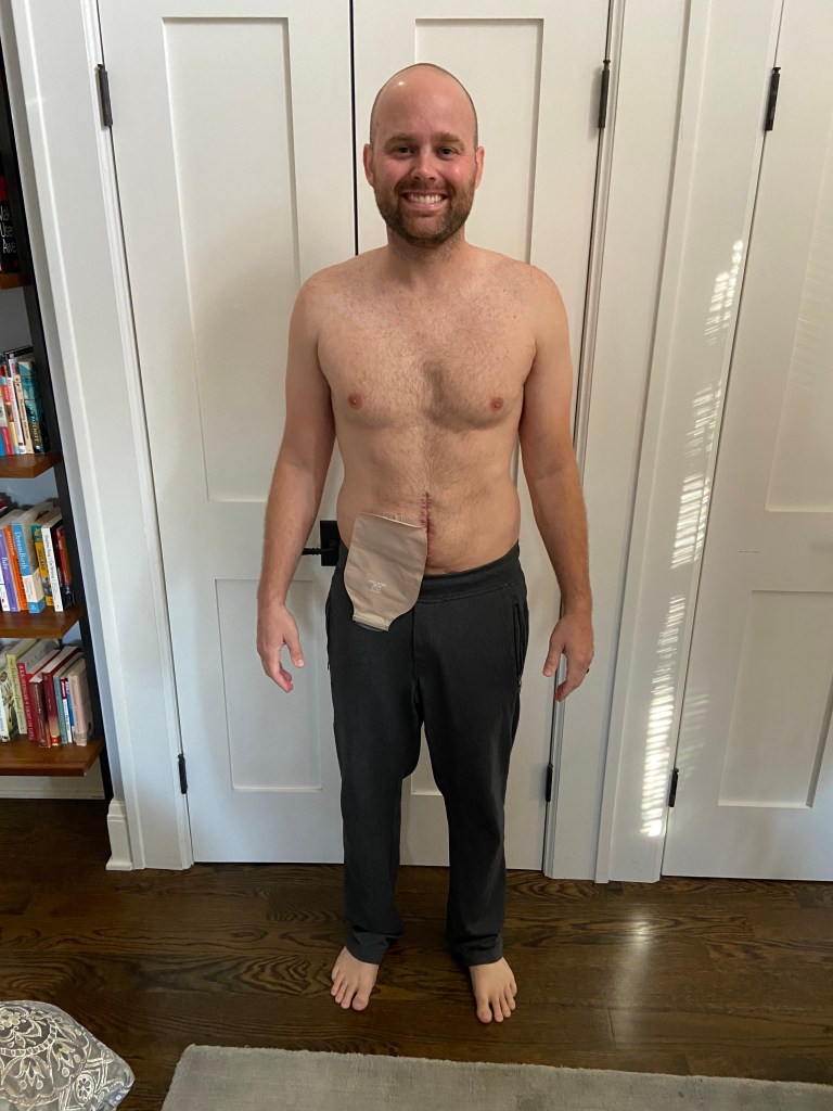 The ileostomy bag and I are still joined at the hip (sorry), getting along much better now. I had a bit of an issue they call a “separation,” where the skin around the stoma doesn’t heal after the stoma retracts to its smaller post-surgery size. (For a while after surgery, the stoma is very swollen from all the action — in my case, probably twice the size it has settled down to now.) With a little powder and some invaluable guidance from Rose, my amazing ostomy nurse, it’s nearly fully healed now.